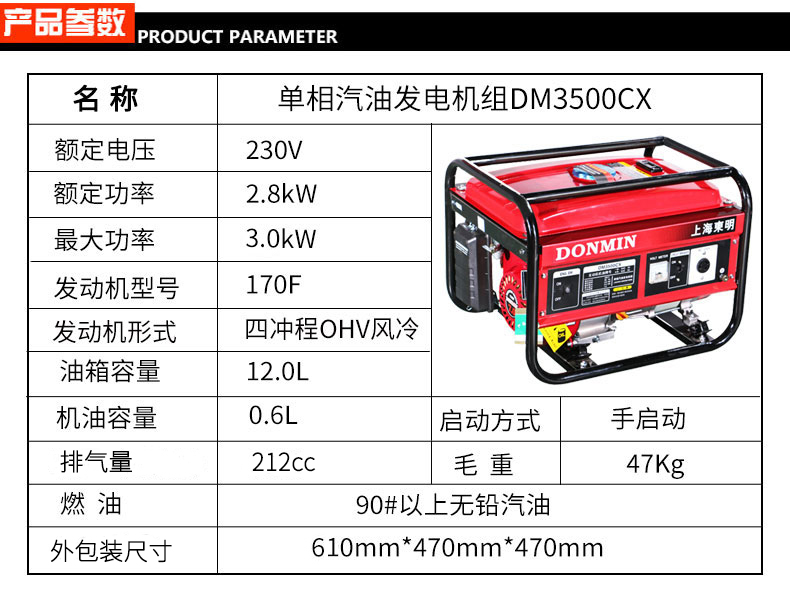 * 表示必填采購:單相3kW小型汽油發電機組 DM3500CX