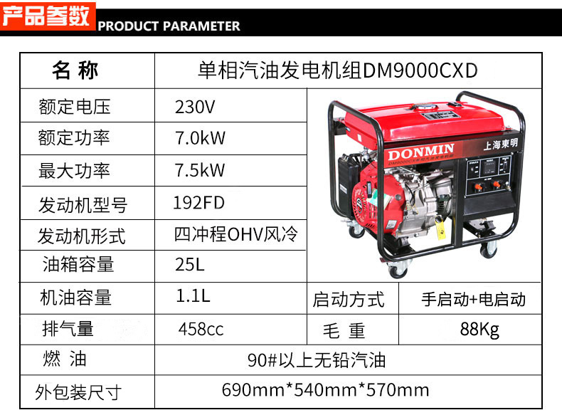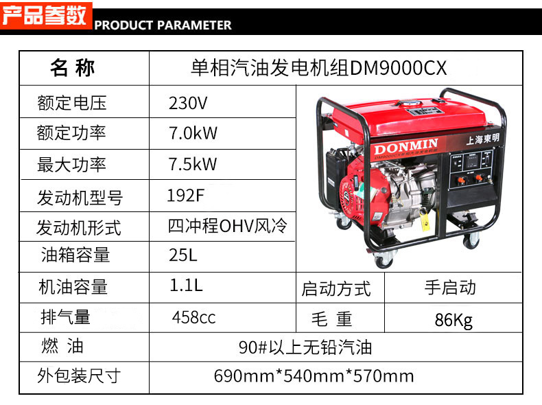 * 表示必填采購:單相7kW小型汽油發(fā)電機組DM9000CXD