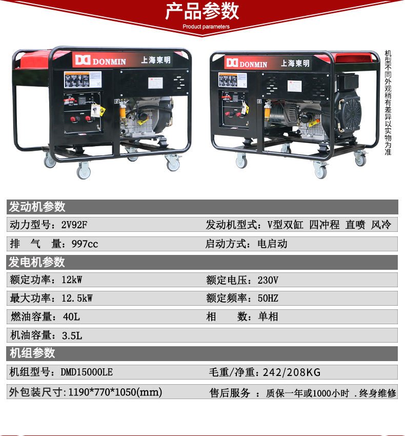 - 上海東明12KW單三相柴油發(fā)電機組DMDS15000LE。