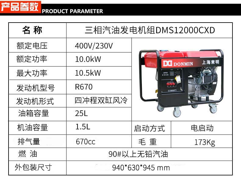 - 三相7kW小型汽油發電機DMS9000CX(D)